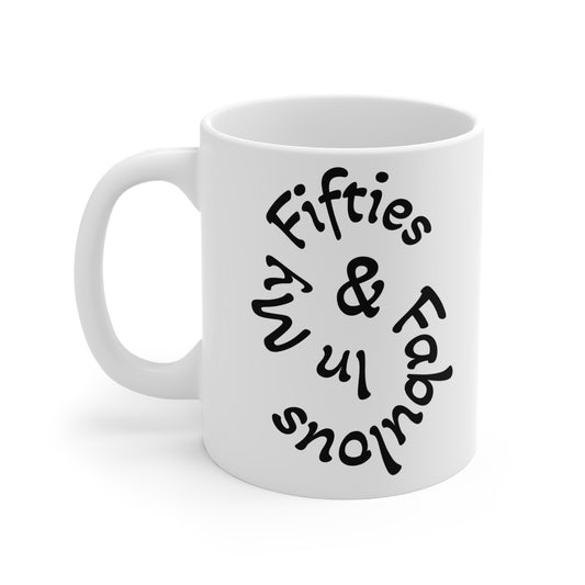Fabulous Fifties Mug, Birthday Gift, Nostalgic Coffee Cup, Retro Style, Fun Party Favor, Vintage Tea Mug, Quirky Homeware (50 & Fearless and Fabulous)