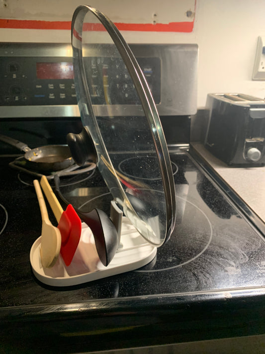Foldable Pot Lid Holder Spoon Rest with Lid Holder for Kitchen Utensil Rest for Spoons Lids Spatula Rest Stove Holder Tongs Foldable Storage Rack Spoon Holder for Kitchen (White)